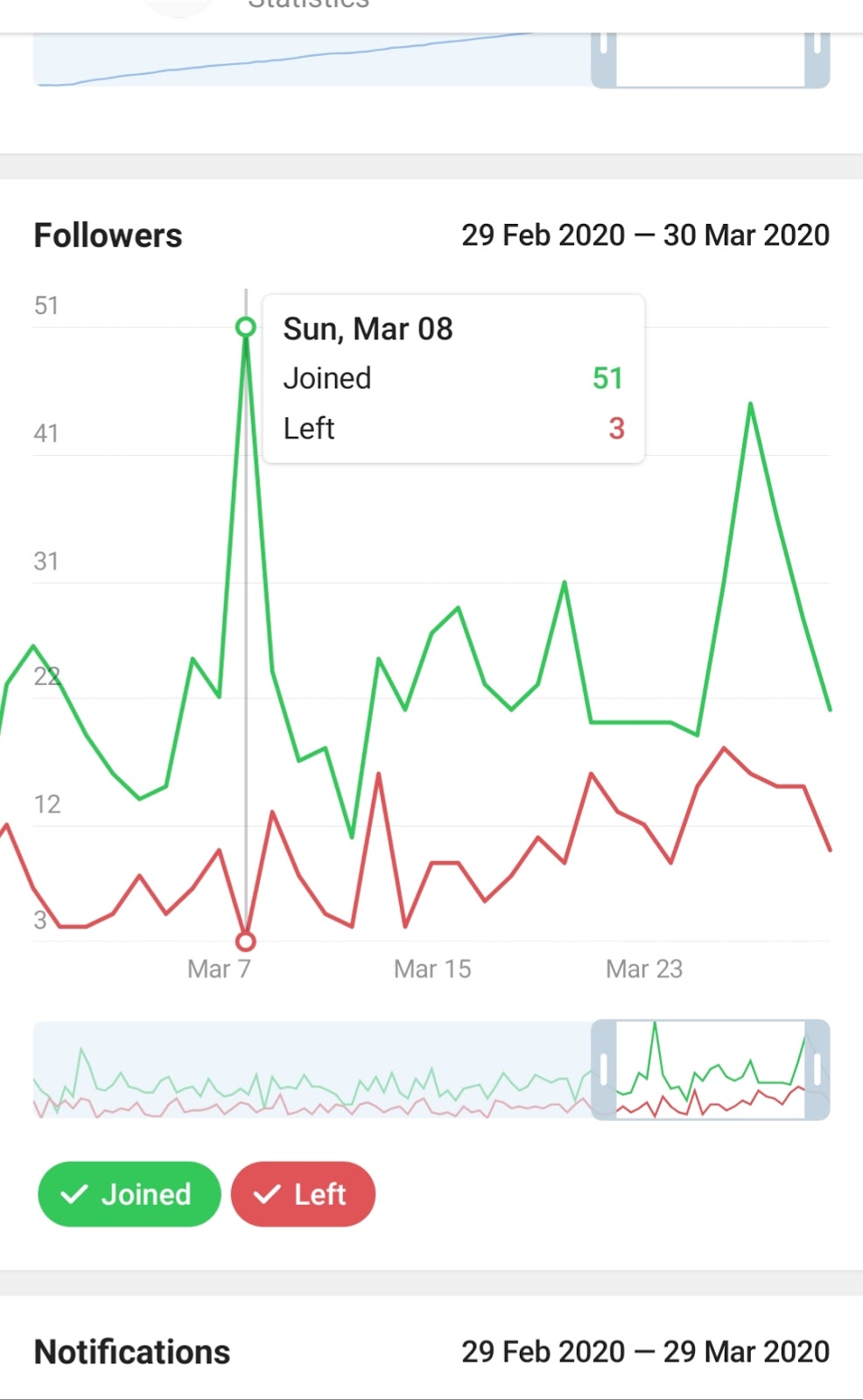 وهي الميزة الرائعة التي تظهر لاصحاب القنوات الكبيرة التي يزيد اعضائها عن 1000 عضو حيث اصبح بامكانهم معرفة الكثير من الاحصائيات الخاصة بالقناة مثل عدد الاعضاء المغادرين والمشتركين الجدد ومن اي اتى الاعضاء